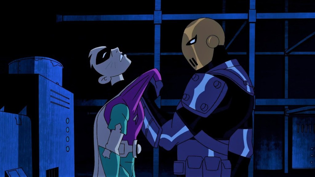 The show’s primary antagonist is Slade, who in the comics is Slade Wilson a.k.a. Deathstroke. However, the folks at Cartoon Network left him as “Slade” for censorship reasons. Other versions of the character, whether it be the comics, CW’s Arrow, or the post-credits scene in Justice League, his identity is never really a secret. He wears the mask and armor as protection, but he’s always Slade Wilson: a middle-aged white guy with an eye patch. In Teen Titans, we never see him without his mask, and they even tease that his appearance is a secret, like when he hides his face with his hand and runs off after his mask breaks off or when Robin removes the mask and sees that he had been fighting a robot instead of the real Slade. Since the heroes are already familiar with at least his first name, why tease his identity like it’s some big secret?