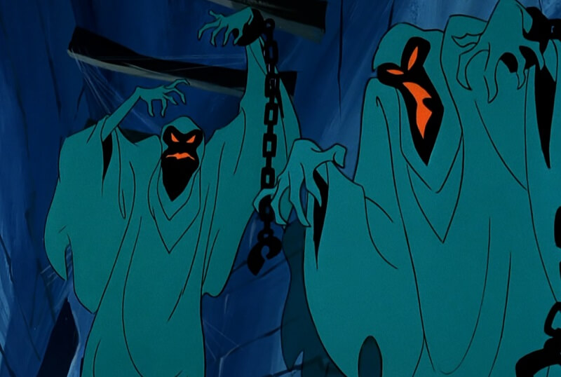 What makes Captain Cutler’s ghost so scary is that by wearing a sea diving suit, he’s wearing something that a person could have actually died in by drowning or being lost at sea. His greenish glow is positively haunting, plus there’s no escape from him on either land or sea. Giving him a speargun in Scooby-Doo 2: Monsters Unleashed only made him even scarier.