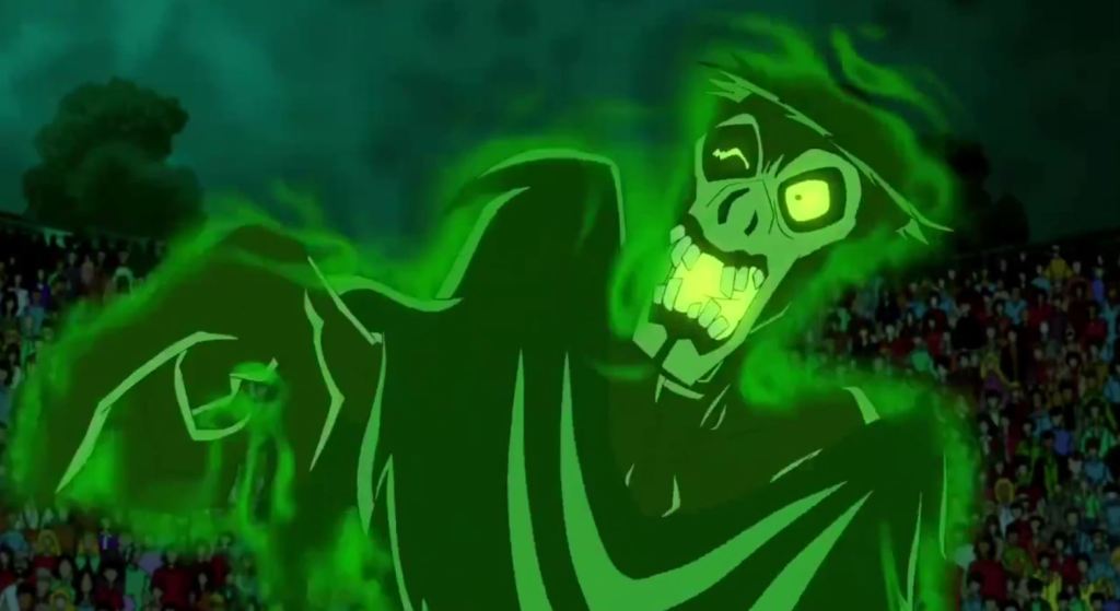 The Ghost of Dead Justice is the coolest name for a Scooby-Doo villain, and possibly one of the coolest designs. He’s an undead cowboy with rotting flesh falling from his bones. This guy chasing you on horseback with his lasso at the ready to tie you down is definitely a frightening idea. Let’s not forget that he’s able to fire “demon bullets” from his pistol. These are only CGI projections, but for his victims who don’t know that, being hunted down by the Ghost of Dead Justice must feel life-threatening.
